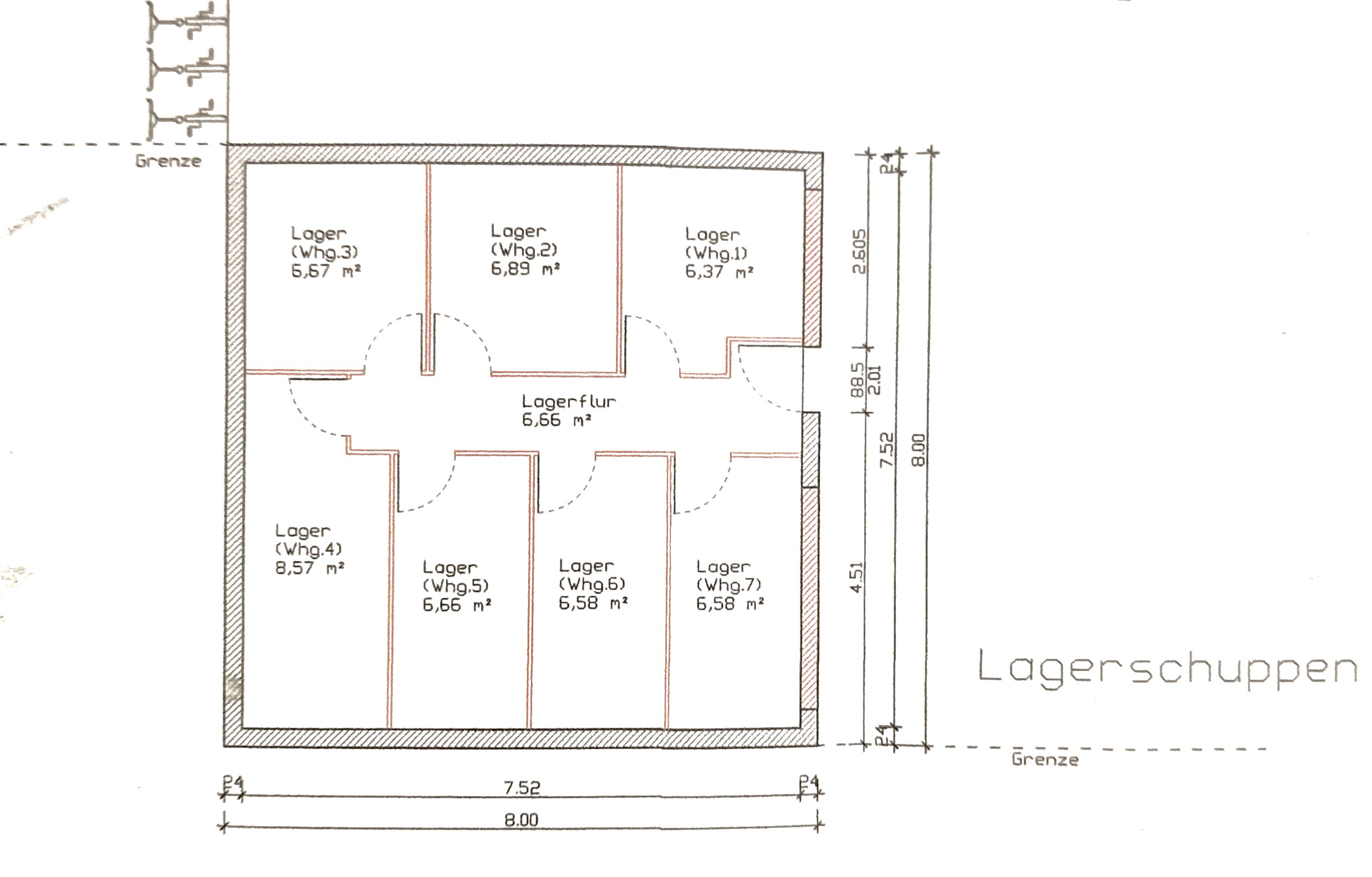 Zu jeder Wohnung gehört ein separater Lagerraum, der sich jeweil im Untergeschoss (UG) oder im Nebengebäude befindet.